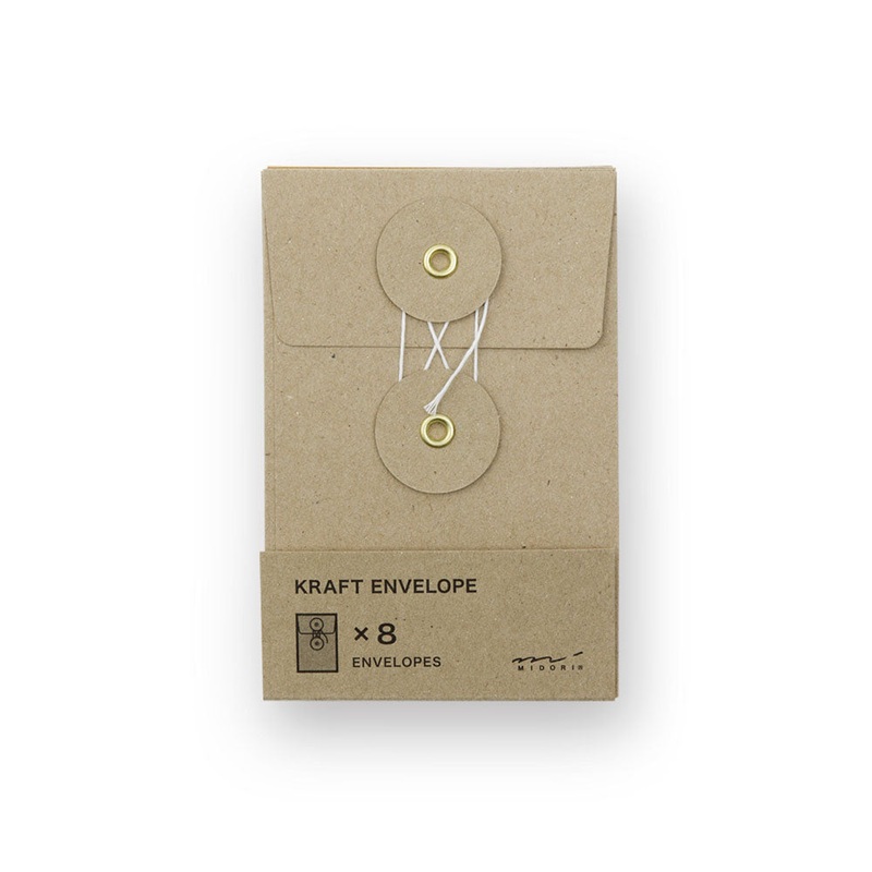 Envelope with button and string closure reminiscent of the classic manila envelopes. Features Pack of 8 envelopes Dimension: 12 x 8cm. ( 4.5x 3.1in. approx.)
