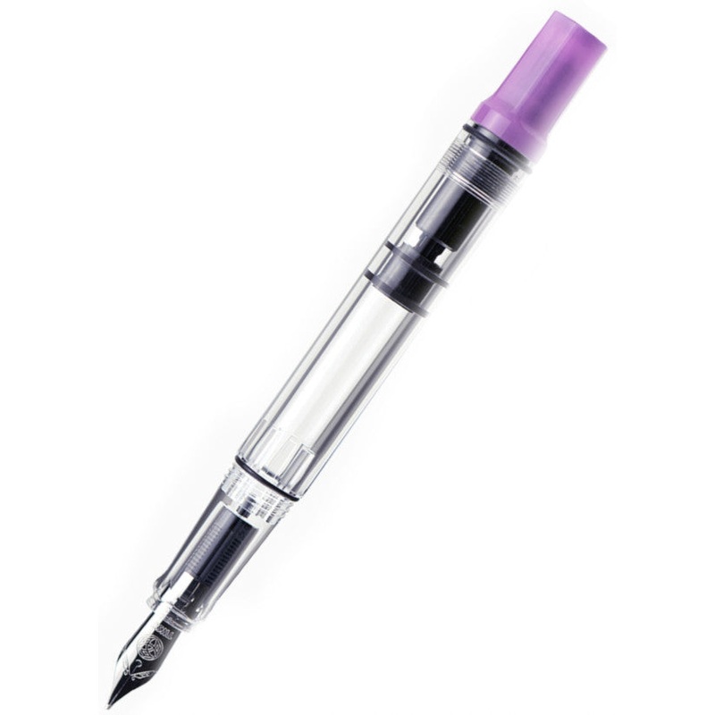 The TWSBI ECO Glow Purple Fountain Pen features a glow in the dark cap and piston knob. Like all other TWSBI ECO Fountain Pens, it is a crystal clear acrylic demonstrator pen with a large piston fill mechanism and a fine quality stainless steel nib.