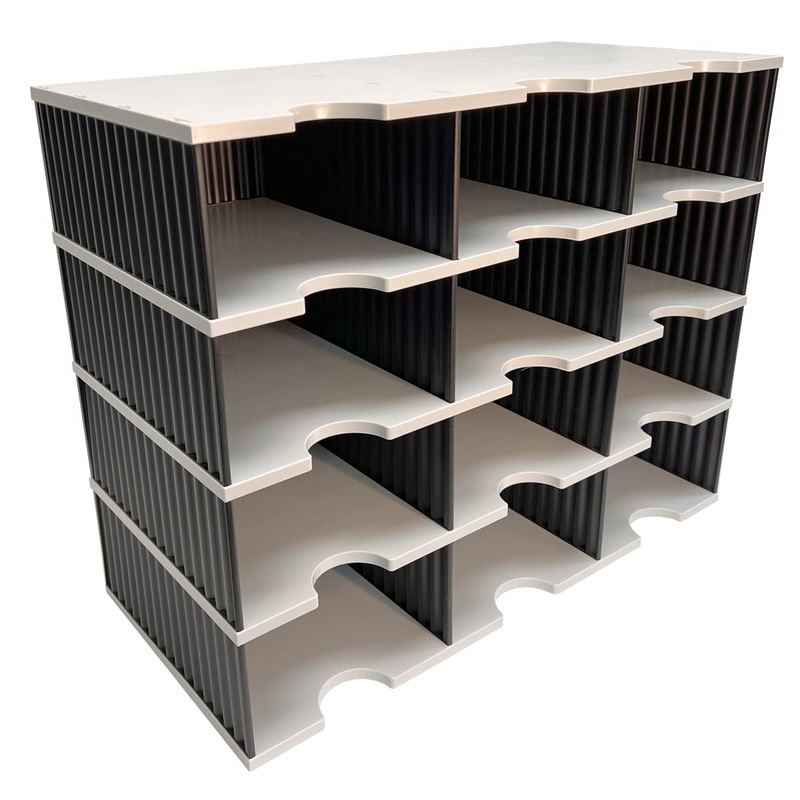 TierDrop High Wall units neatly organize literature, forms, and printer or fax machine supplies in roomy, 9 1/16″w x 5″h x 12 3/4″d compartments, ample room for two full reams of paper. Unlike competitive “1-piece” systems, TierDrop’s modular design allows you to add more slots at any time using 3-Slot High-Wall Add-Ons (sold separately). The unique “ripple” wall design provides strength comparable to steel, but at a lower price. “No-tool” designs allows simple assembly in minutes.