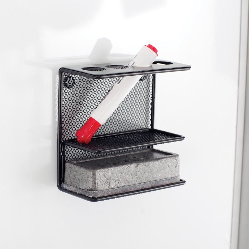 FeaturesMarker Holders are magnetic, making them perfect for use with any magnetic whiteboard or glass boardFour marker slots keep standard dry-erase markers upright Marker Holder with Shelf neatly stores four dry-erase markers and whiteboard eraserDetails