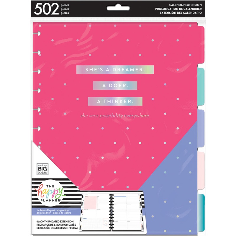 Extend your planners life by adding six more months with The Happy Planner Six Month Dashboard Extension Pack.6 Months undatedStickers included for dating sheetsDashboard layoutUnique weekly layout with to do lists, errands, things to buy and moreDesigned