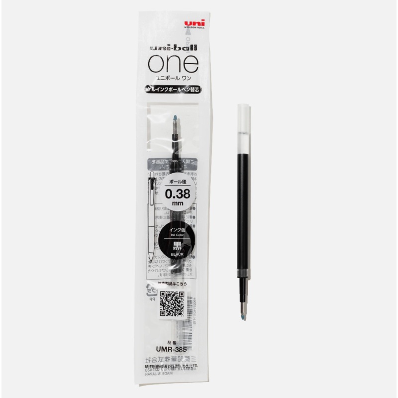 This refill is for Uni-Ball One pens, Uni-Ball One F pens and Uni-Ball One P pens. Available in both 0.38mm and 0.5mm. Details: One pen refill Black or blue ink .38mm and .5mm