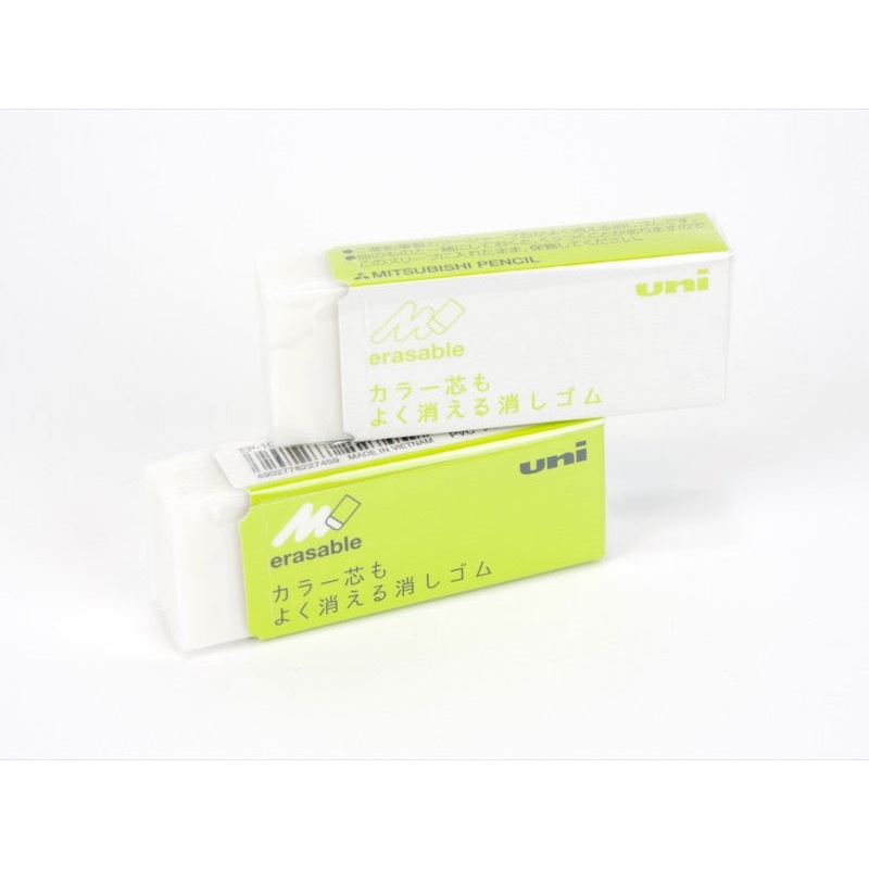 The Uni Colored Pencil Eraser was released with the Uni Colored Mechanical Pencils. It pairs very nicely with the Uni Nano Dia Colored Lead. The eraser sleeve is yellow-green on one side and white on the opposite side.