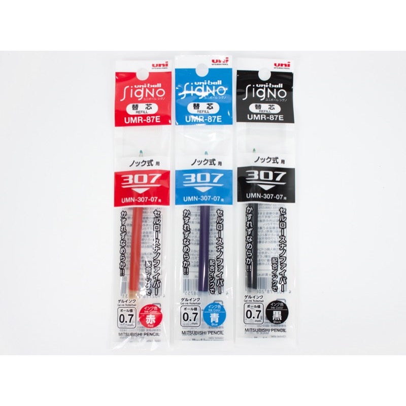 Refill for the Mitsubishi Uniball Signo 307 pen. Your choice of red, blue, and black. Tip size choice of .38mm, .5mm, and .7mm.