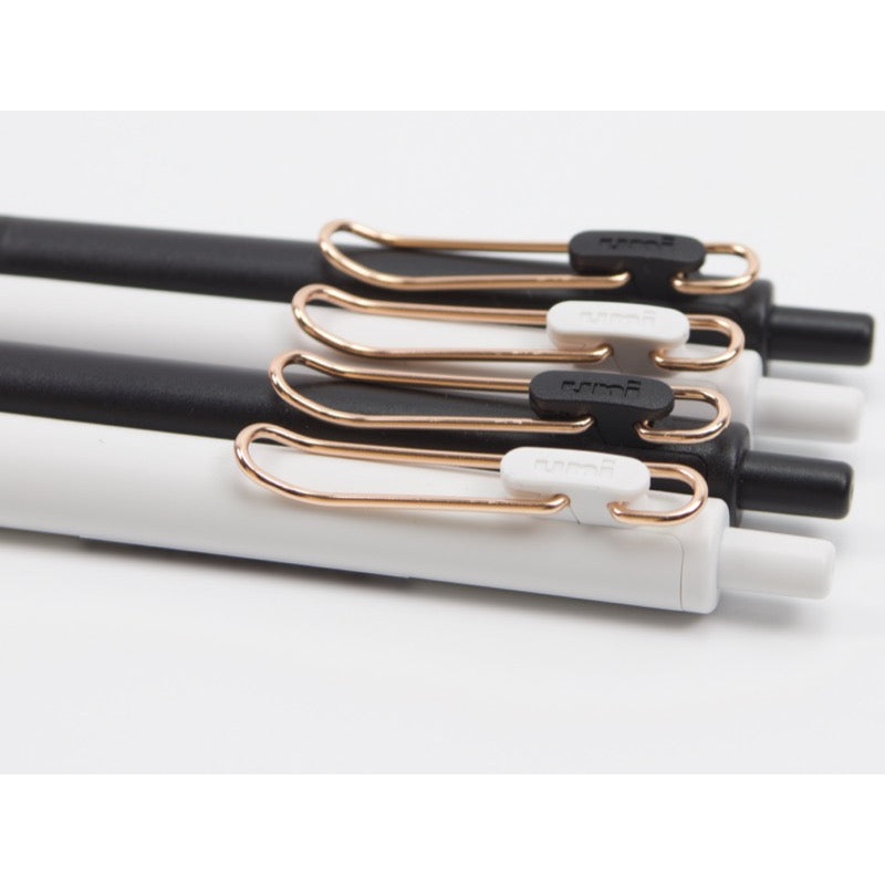 Welcome the return of the Uniball One RoseGold Clip! This innovative bold and bright black pigment ink is formulated to sit on top your paper rather than absorb and disappear into the paper. The result is a bold bright ink that doesn't fade. Your choice of