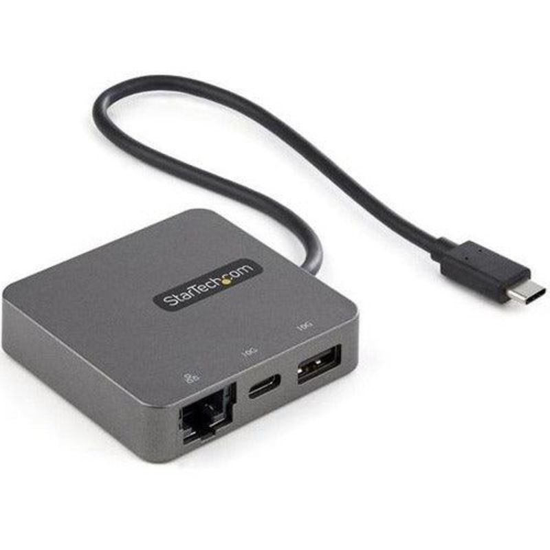 In addition to the video outputs, the portable USB-C dock gives you one 10G USB-C port and USB-A port to connect your latest and legacy USB devices. The adapter also integrates a Gigabit Ethernet port to access a wired network.