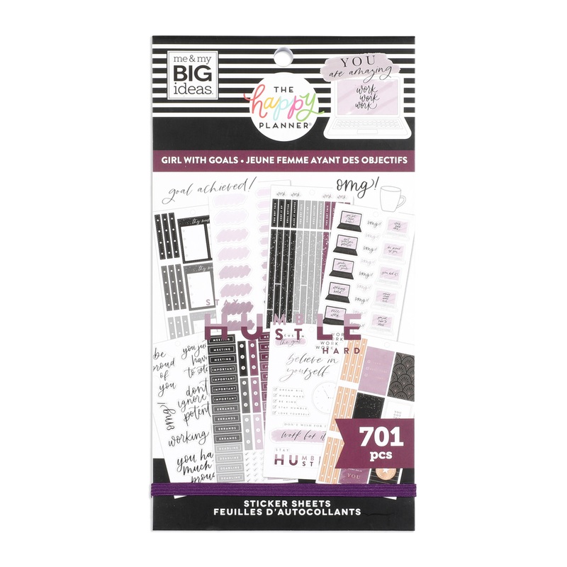 Stay humble, hustle hard. Get motivated to be your own boss. Use this sticker book to set and achieve goals. It includes stickers with prompts for reflection, priority lists, colored boxes, and inspirational quotes. Made for the goal getter, these will pus