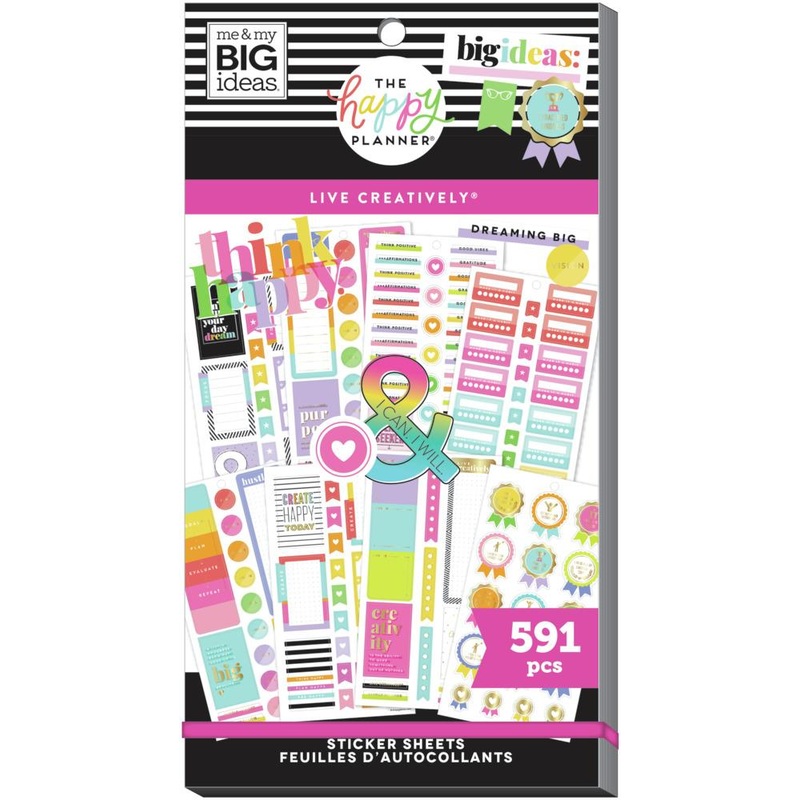 The Happy Planner Value Pack Stickers are a forever favorite for planners and sticker lovers. The bright, colorful, and functional stickers of the Live Creatively sticker book add a pop of color, daily inspiration, and tons of style while keeping your day-