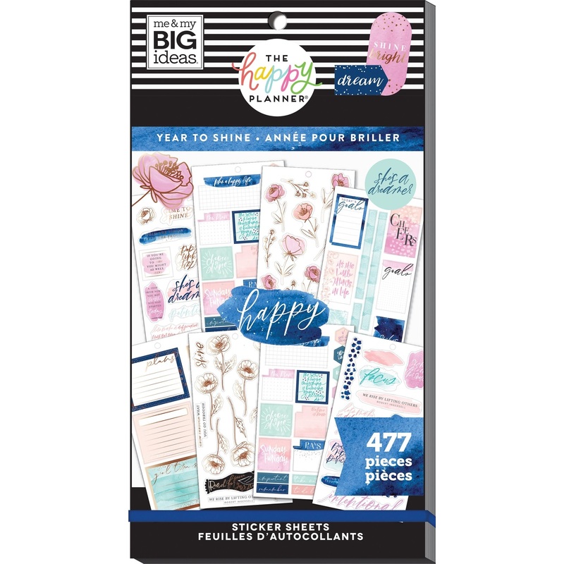 Ready to kick butt in 2022? Set those goals, girl. This is your year to shine and we want you to tackle everything on your long list of wants, needs, and responsibilities. Calming blue tones and washes of watercolor and floral designs make the Happy Planner Year to Shine Classic Value Sticker Pack a great companion for those that love a light wash of color in your weekly and monthly layouts. Its great for both daily and long term goals, stay on task and on top of what you need to get accomplished with this inspiring sticker pack.