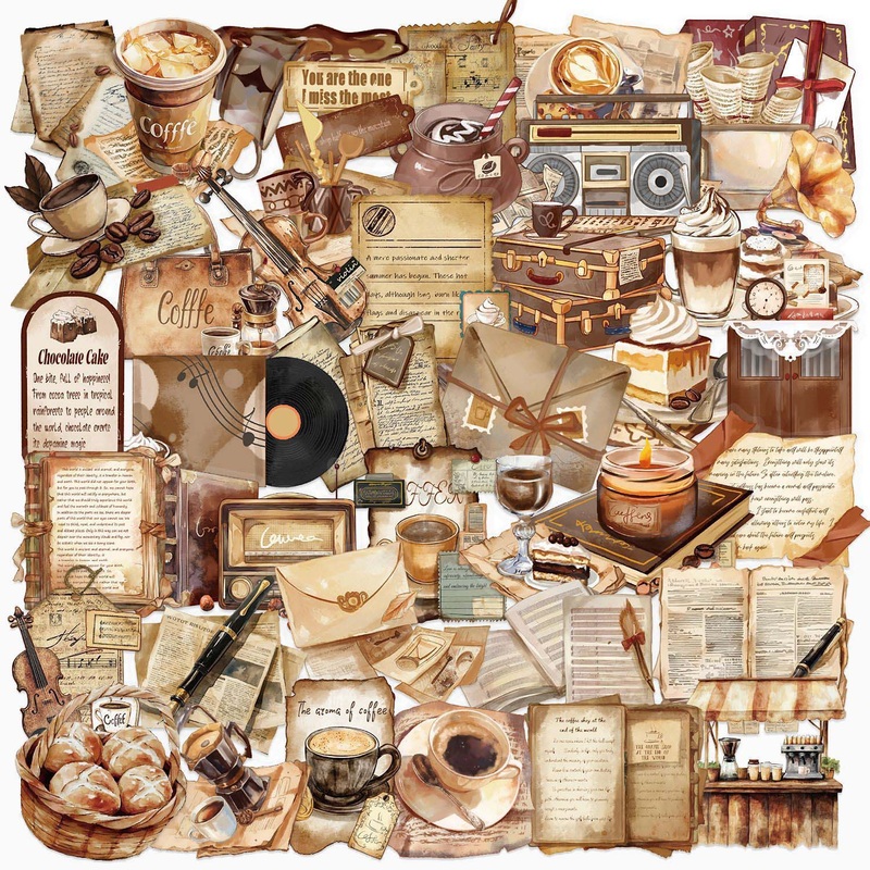 Why Youll Love It: 50 Unique Designs Coffee cups, envelopes, postcards, and more! Sepia-Toned Beauty A timeless palette for vintage lovers Glossy & Waterproof PET material ensures durability and elegance Seamless Blending Transparent edges melt into your page like magic Journaling Essential Ideal for layering, collage art, and travel logs