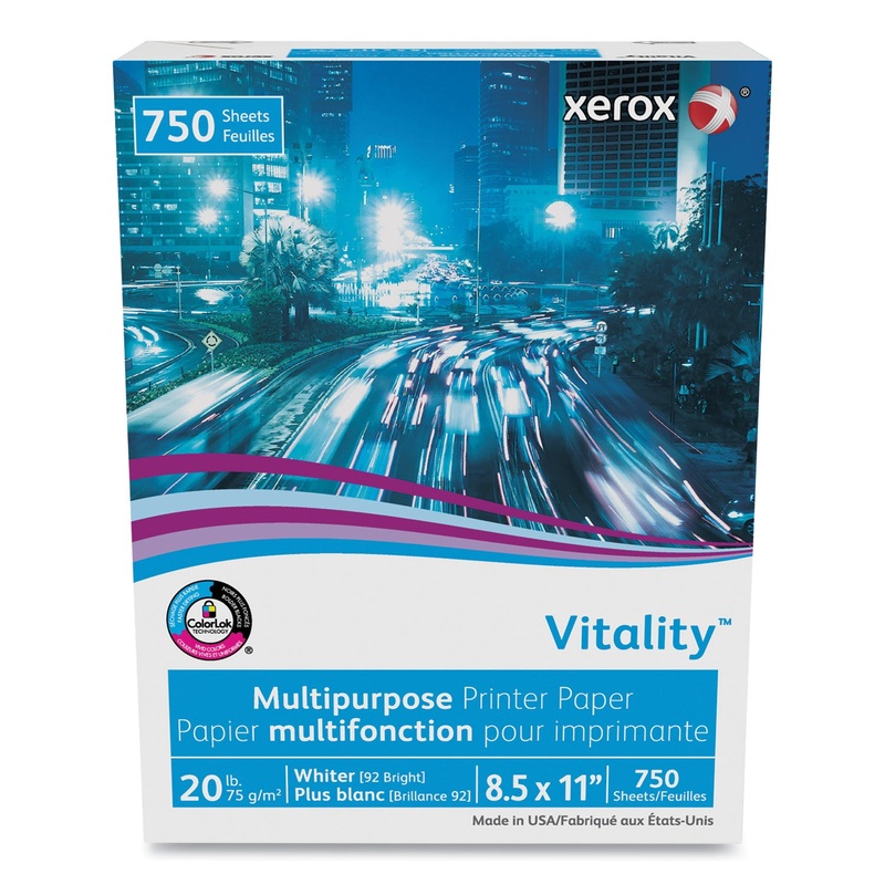Vitality Multipurpose Print Paper, 92 Bright, 20 lb Bond Weight, 8.5 x 11, White, 750 Sheets/Ream