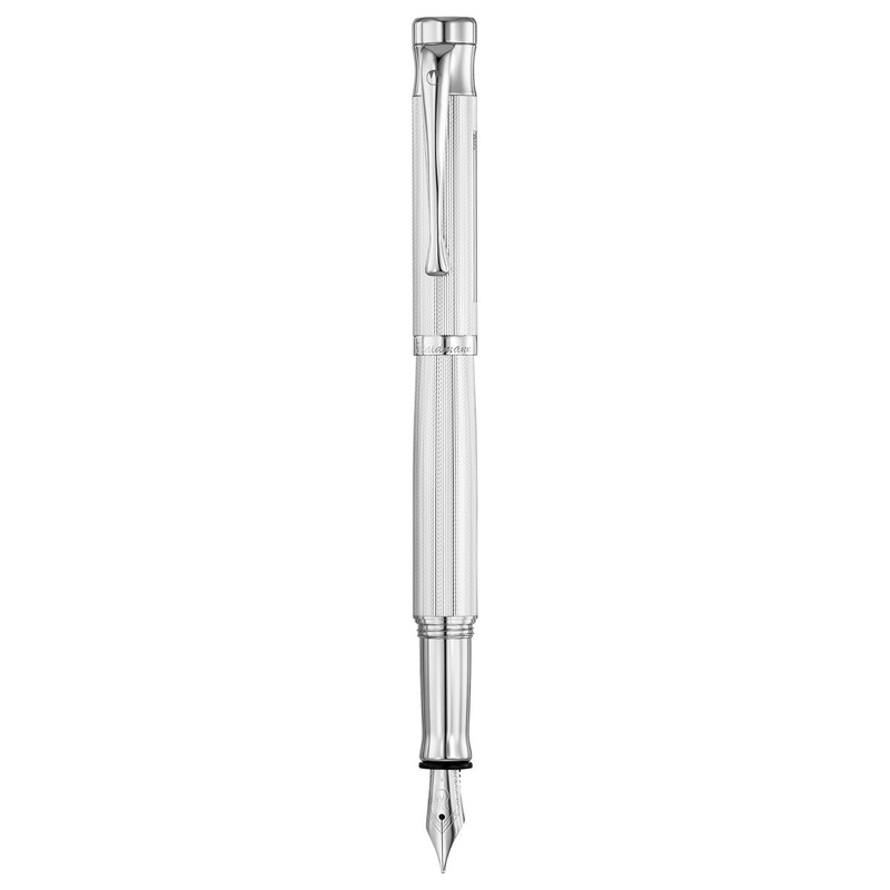 The Tango's tapered design is made from sterling silver with rhodium-plated trims. The texturedbarley pattern has a space for engraving, should you wish to personalize your pen.The Tango sports your choice of a steel nib or an 18K gold bicolor nib and arri