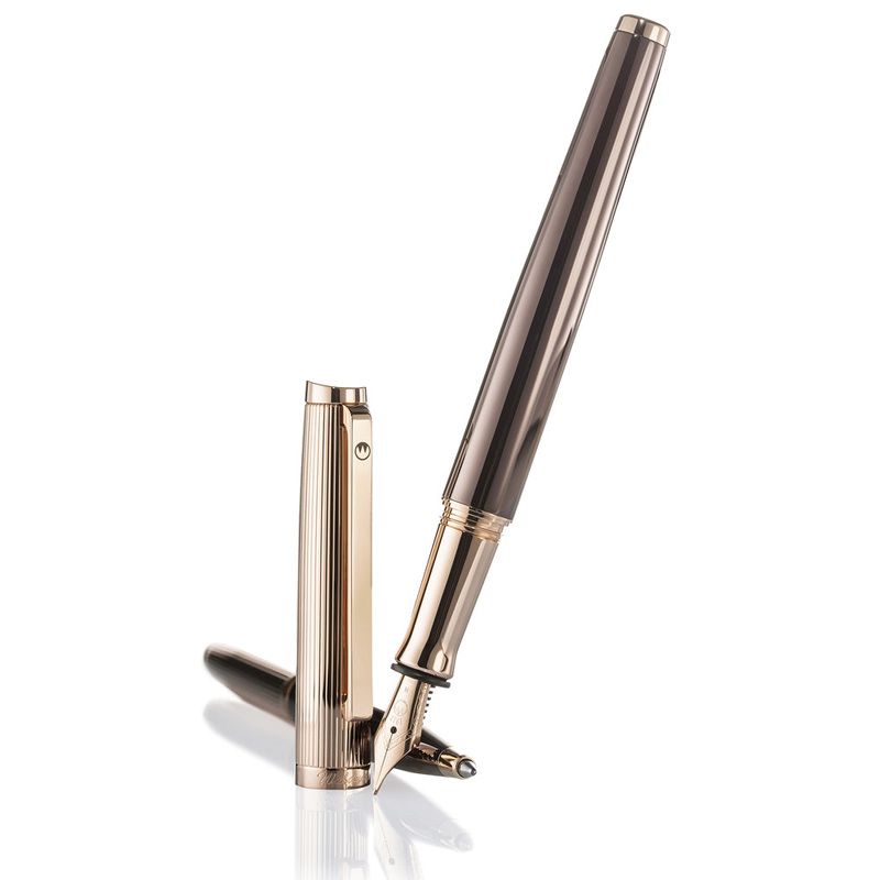 Waldmann Tuscany Chocolate Fountain Pen Sterling Silver and chocolate 18ct gold lid Screw system lid Line pattern UK Hallmarked Sterling Silver Luxury gift box included Personalise Your GiftThis product can be engraved to create a unique personalised gift.