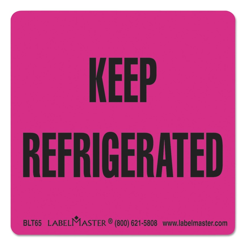 WAREHOUSE SELF-ADHESIVE LABELS, KEEP REFRIGERATED, 3 X 3, BLACK/PINK, 500/ROLL