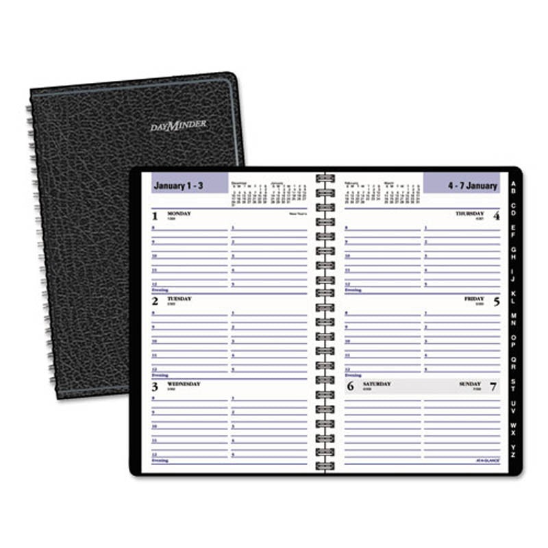 FeaturesPlan your week in hourly intervals.One week per two-page spread; block-style appointments; past, current and two future months reference.Tabbed telephone/address section.DetailsPlan your week in hourly intervals. One week per two-page spread; block