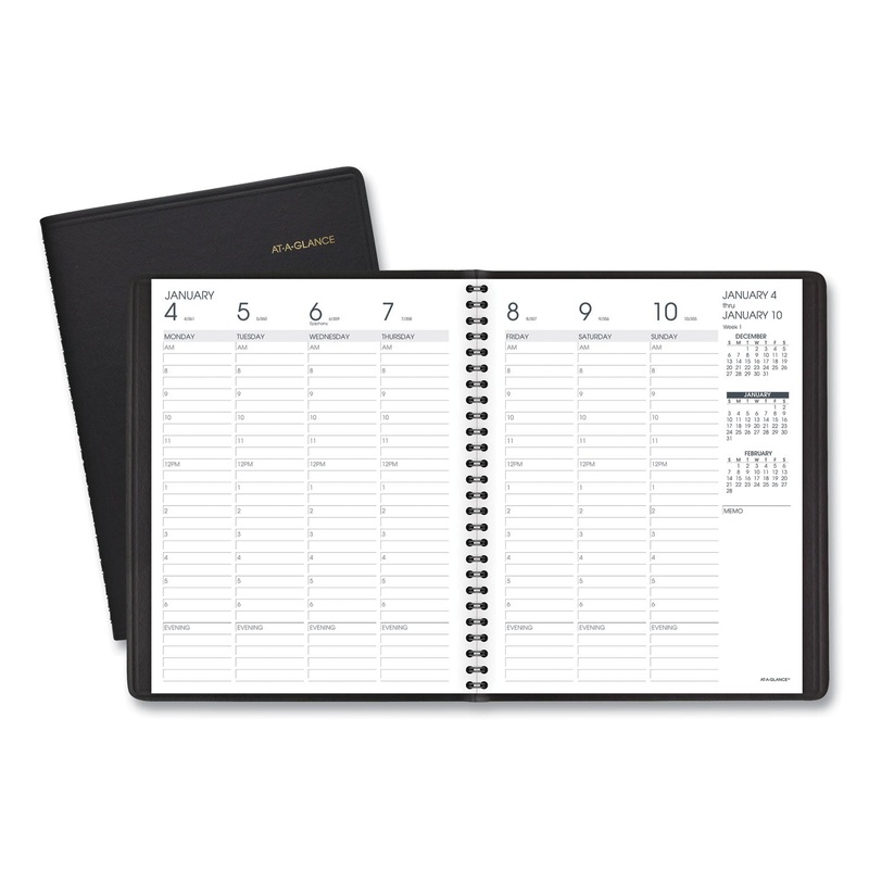 Plan your week in hourly intervals. Premium cover for enhanced durability with a storage pocket. One week per two-page spread. Includes past, current and future month reference calendars. High-quality paper with superior ink bleed resistance. Weekly Vertical-Column FormatPast, current and one future months reference and untabbed Telephone pages. Dated/Undated: Dated; Calendar Format: Weekly; Page Format: One Week per Two-Page Spread; Edition Year: 2024 to 2025.