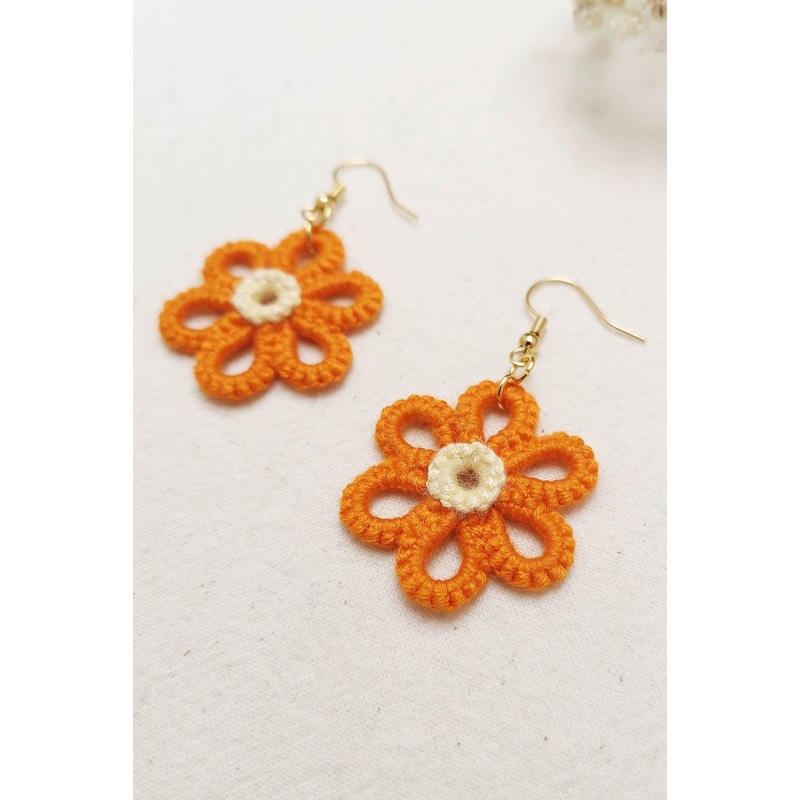 Retro-inspired daisy flower earrings handcrafted by Katie of Daffodil and Leek using the traditional lace craft of tatting.Fun, lightweight and plastic free - what's not to love? Tatting is a traditional lace making technique, historically used for doilies