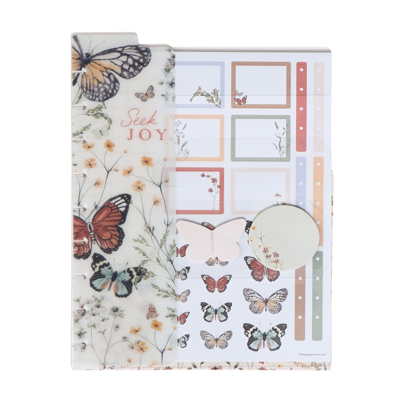 This Wild Fields themed Classic Happy Planner Accessory Pack features a floral theme, butterflies, and calming colors. This pack features the best planner accessories, including a storage folder, sticky notes, sticker sheet, a bookmark, and filler paper. Add these wildflower themed accessories into your Classic size Happy Planner, notebook, or journal to bring more utility to everyday planning.