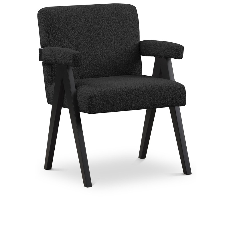 Add a touch of modern comfort to your space with this Woodloch boucle fabric accent chair. Upholstered in rich boucle fabric on the seat, back, and arms, this chair features a black finish solid wood frame for a beautiful contrast that draws the eye in an