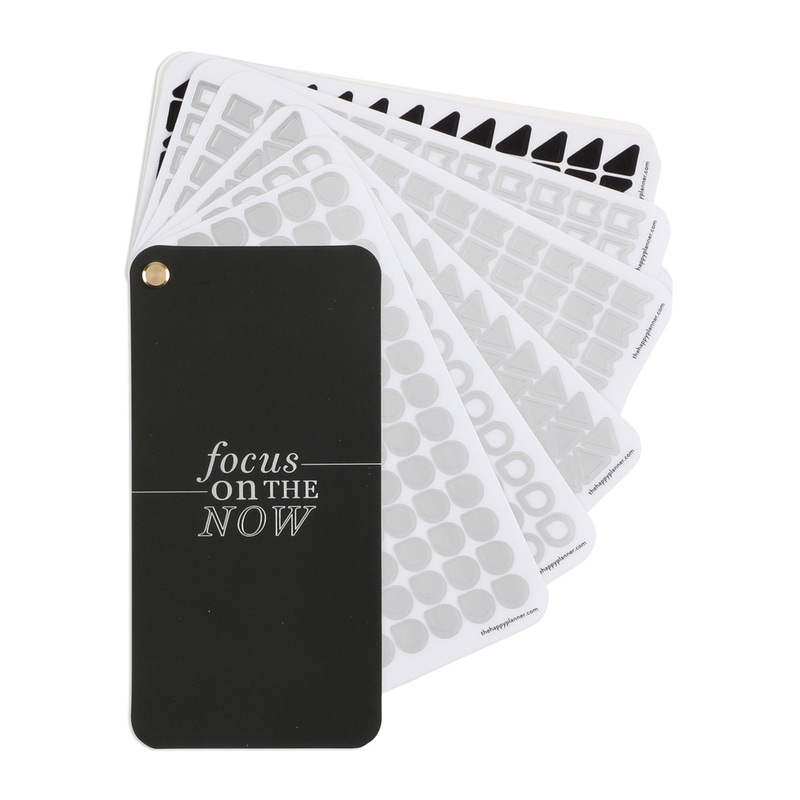 Focus on the now. Incorporate productivity stickers to your planning routine. Add these matte paper and foil stickers to call out important reminders and flag dates. This fan sticker book is small enough to carry with you and wont take up lots of desk space. Get creative and plan your busy workdays with a little help!