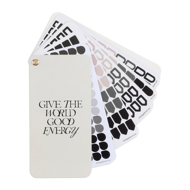 Give the world good energy. Incorporate productivity stickers to your planning routine. Add these matte paper and transparent stickers to call out important reminders and flag dates. This fan sticker book is small enough to carry with you and wont take up lots of desk space. Get creative and plan your busy workdays with a little help!