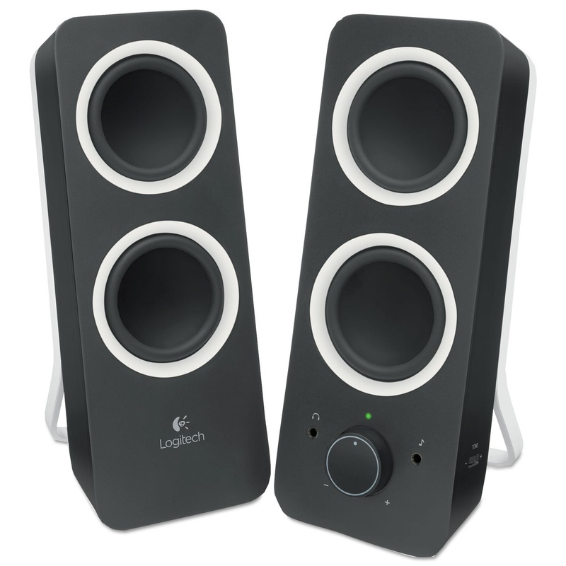 For rich stereo sound with deep bass?for any living space?there's the Logitech Z200 multimedia 2.0 stereo speakers. With 10 watts of peak power and two drivers per satellite, these modern-looking multimedia speakers pump out enough volume to fill any room