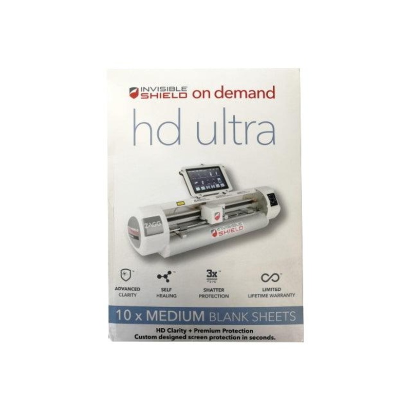 PLEASE NOTE:- Pricing details are per individual product – MUST be ordered in box quantities of 10 – This product is to be used in conjunction with the Zagg ISoD machine (sold separately).|Overview:Why InvisibleShield? – Limited lifetime warranty – #1 selling screen protection – Easy application – Military grade protection – Trusted by major retailers & consumers around the world|:Never turn a customer away. InvisibleShield On Demand is a revolutionary patent-pending system that increases sales while reducing on-hand inventory. Its online library contains over a thousand device designs and new designs are automatically added on their release dates. On Demand creates a premium InvisibleShield screen protector for virtually every customer in seconds so you never lose a sale again. Increase Sales Opportunities Increase sales by offering an InvisibleShield for virtually every device ? without added inventory. Never turn a customer away?no matter what device they have.Improve Inventory Management Reduce Inventory Carrying Cost: Reduce inventory and forget about shrinkage and obsolescence. Launch Date Available: Over 2500 device designs are stored on the cloud and updated automatically. Offer new device protection the day the device is launched. Save Shelf Space: Highlight your most popular products and sell screen protection for older and end-of-life devices as well. Easy to Use Once trained a standard application takes less than five minutes and provides customers with an added value service.Three Easy Steps 1. Choose your InvisibleShield ? ultra clear ultra privacy or hd 2. InvisibleShield is created 3. InvisibleShield is installed ? Dry Install (eliminates the need for primer spray. Just peel align and squeegee for a lifetime of crystal clear protection?guaranteed.) or Wet Install (for Original and HD Film).|