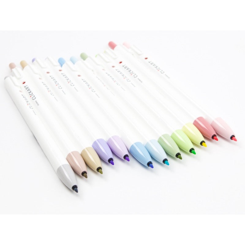 The Zebra Click Art is an innovative fine liner marker pen that features a click-top instead of a cap like most fine liners. The ink has been formulated to accept moisture from the air, which keeps it from drying out easily. The Zebra Click Art writes a .6mm fine line and comes in 12 new beautiful pale colors. It is a fantastic pen for bullet journaling, planning, homework, work diagrams, and planning.