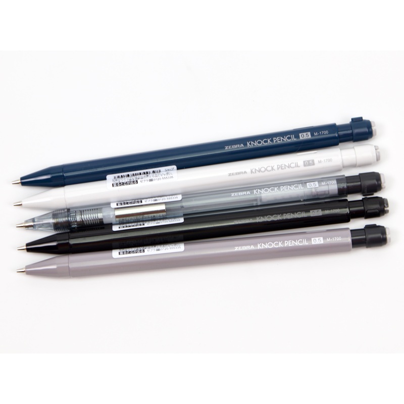 The Zebra Knock Pencil M-1700 is a mechanical pencil with a soft hexagonal shaft like a wooden pencil. There are no grip parts and the shaft is seamless, so you can hold it anywhere. It is equipped with a shaker function that allows the core to come out just by shaking. You can quickly extend the lead without changing your grip. The long, twist style retractable eraser does not use a cap, somaximum efficiency of use has been planned with this pencil.