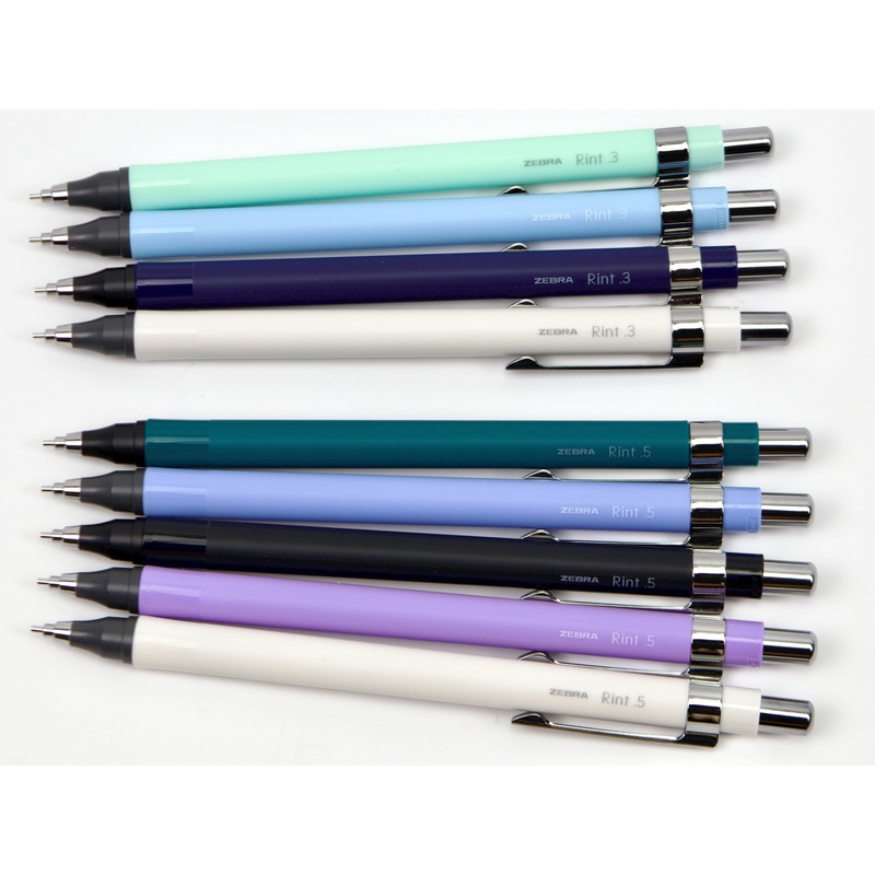 Introducing the Zebra Rint mechanical pencil, a seemingly simple pencil that has much more to share beneath the surface. The Rint boasts the longest pipe in Zebra’s history, increasing visibility 1.5 times while writing! The pencil tip is curved and tapered, and one knock will extend the pipe to over twice the size. A dark resin coating on the pencil tip also reduces light reflection, for even more clarity while writing. Ideal when practicing kanji or other handwriting! The slim matte body comes in five calming beautiful tones, just as stylish as it is precise. It’s a perfect pencil for both students and professionals. Available in .3mm and .5mm.