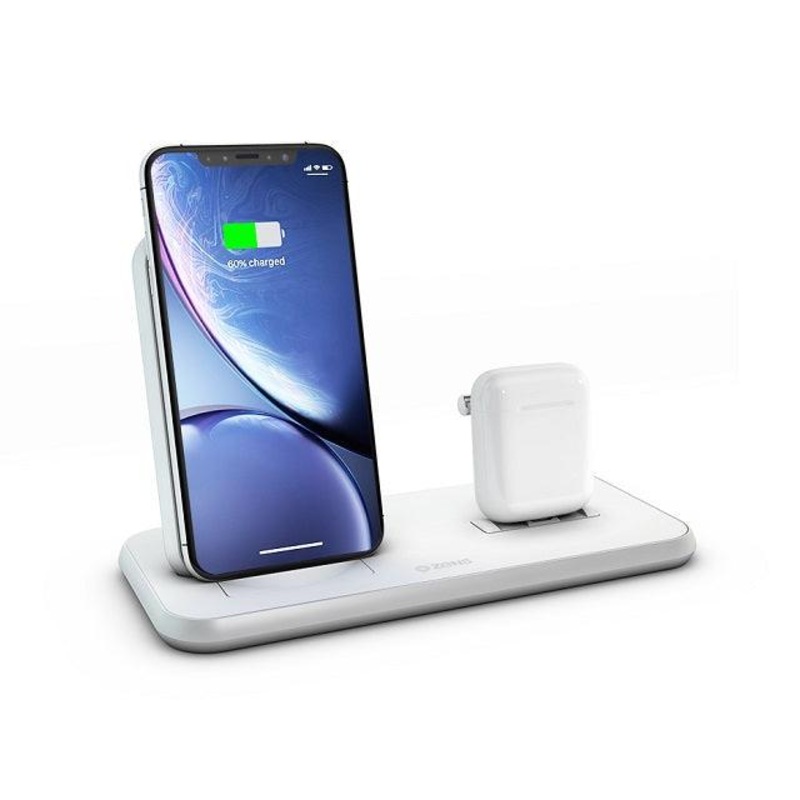 ZENS Aluminium Dual Wireless Charger + Dock 10W White 3-1