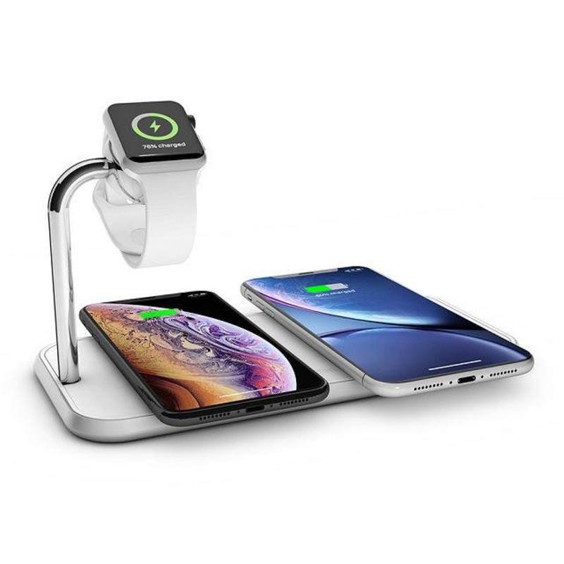 Overview:The non-slip nish ensures perfect placement and the ultra-thin design seamlessly fits in any home or ofce. It is the ideal wireless charger for at home if you have multiple wirelessly rechargeable devices or to share with your loved ones. The charger works with all Apple Watches (series 1 2 3 4 5 6 SE); even an Apple Watch with a closed metal band can seamlessly be charged on the MFi certified watch module.|Features:-20W (2 x 10W) output -Supports Apple and Samsung Fast Charge -Charges two devices and an Apple Watch simultaneously -Ultra-thin (8 mm) design -Made out of one piece high-grade aluminium -Power adapter included -MFi certified -Qi certified|