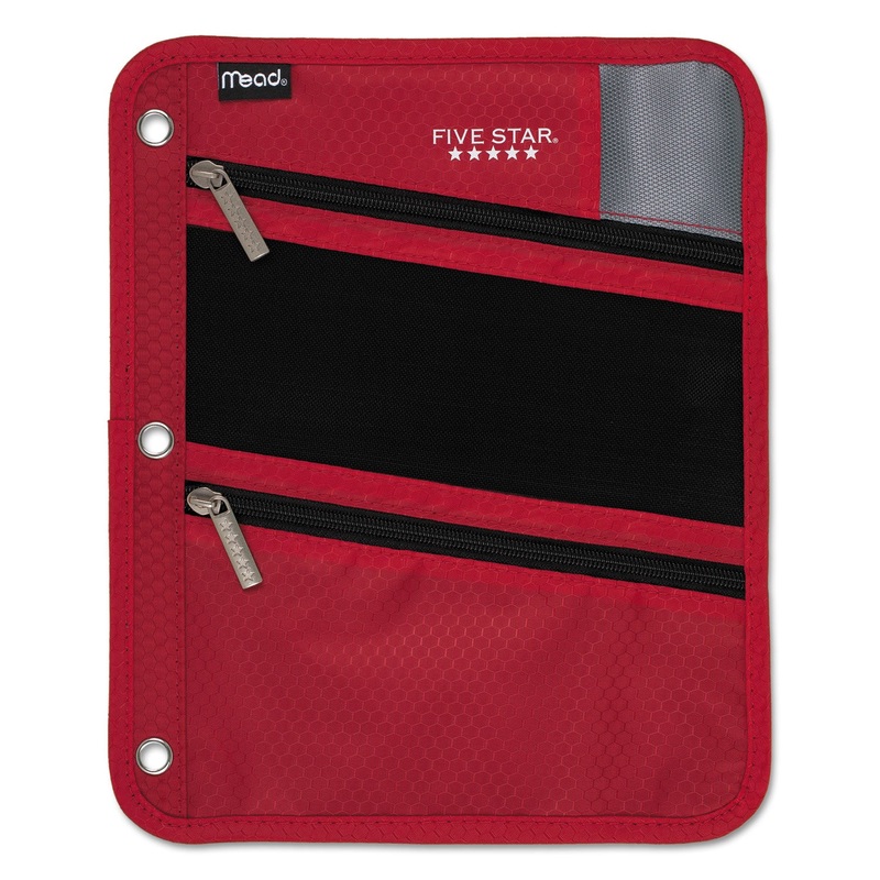 Features three zipper pockets to keep supplies secure. Two pockets for small items have diagonal zippers for easy access. One large zipper pocket has a vertical zipper and is specifically designed to hold bigger items. Durable puncture-resistant, micro-mes