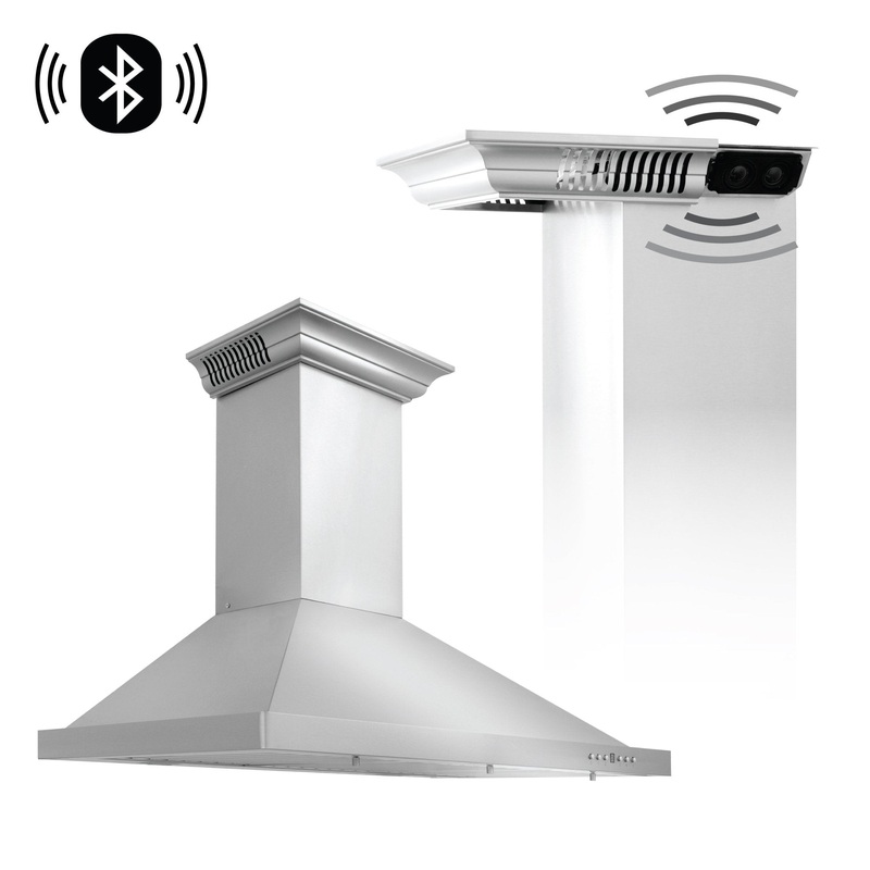 ZLINE CrownSound Ducted Vent Wall Mount Range Hood in Stainless Steel with Built-in Bluetooth Speakers (KBCRN-BT)